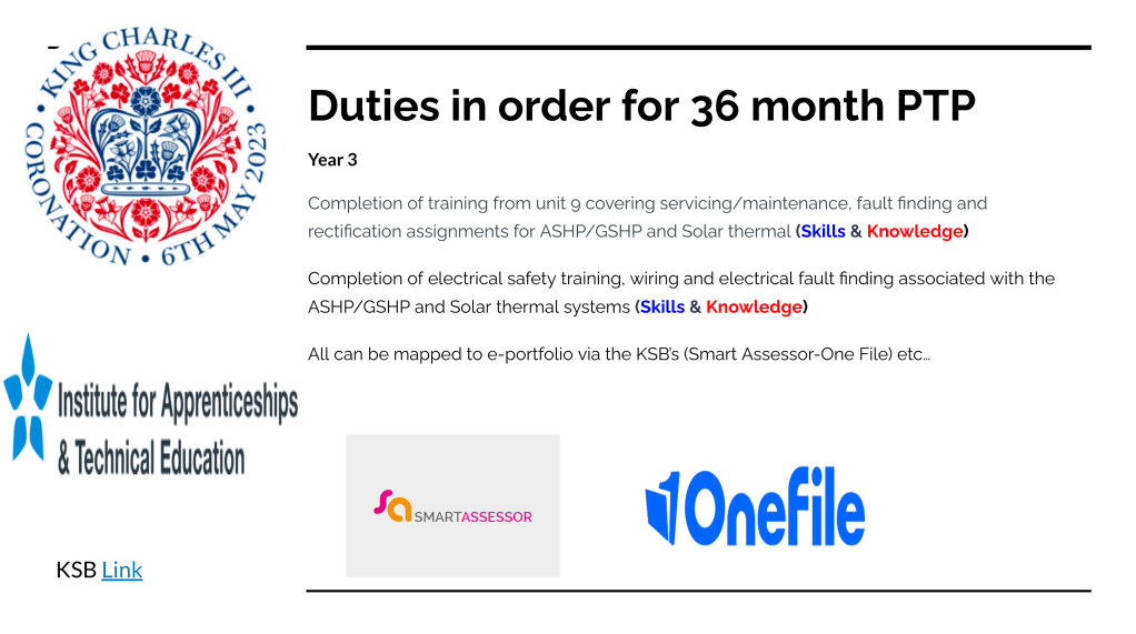 | Install, Commission. Service & Maintain Low Carbon Heating & Hot Water Systems | 260 | On site hours working on portfolio of work |