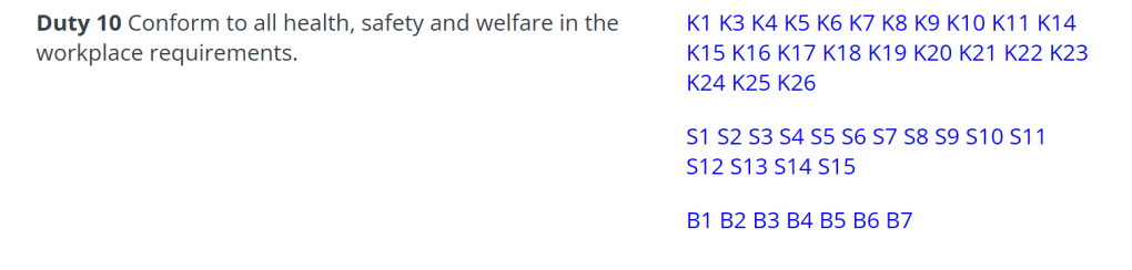 Images below from Institute of Apprenticeships for the LCHT duties & KSB’s
