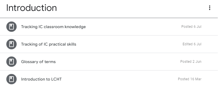 I have created an e-book as an overview of the LCHT curriculum and how I plan to deliver which can be accessed HERE Below are examples taken from the tracking documents for in centre and onsite along with some screen shots from the VLE that all candidates will access.