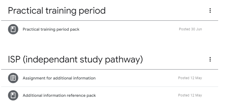 Example below of the VLE for candidates to access resources used in the teaching & learning to meet the KSB’s in centre and on site.