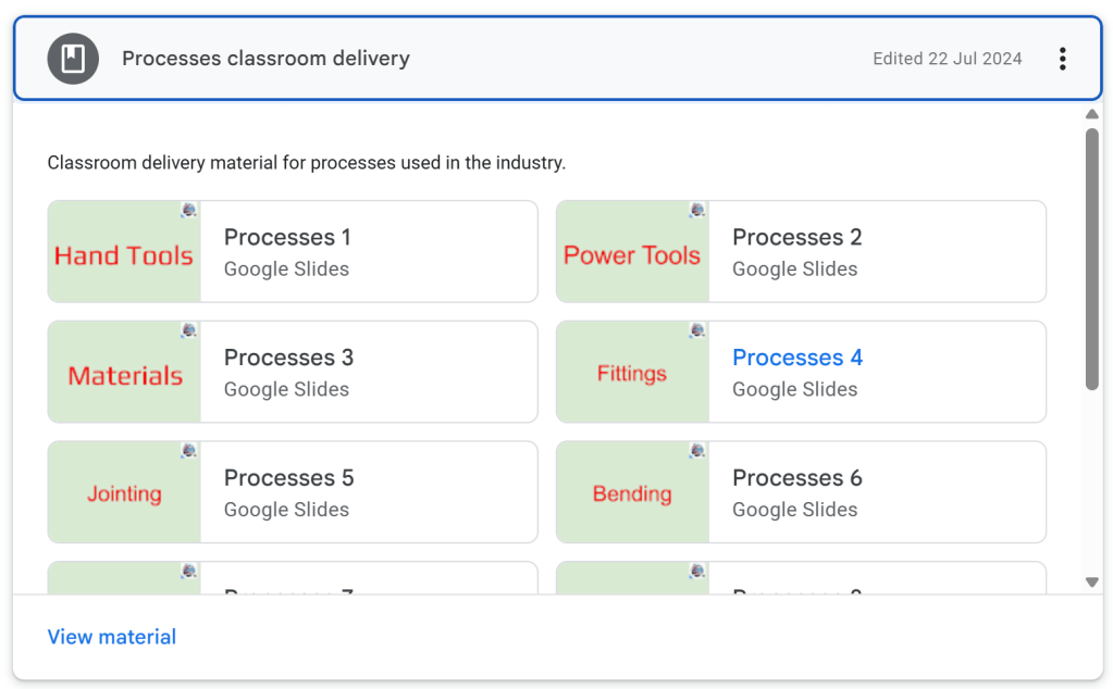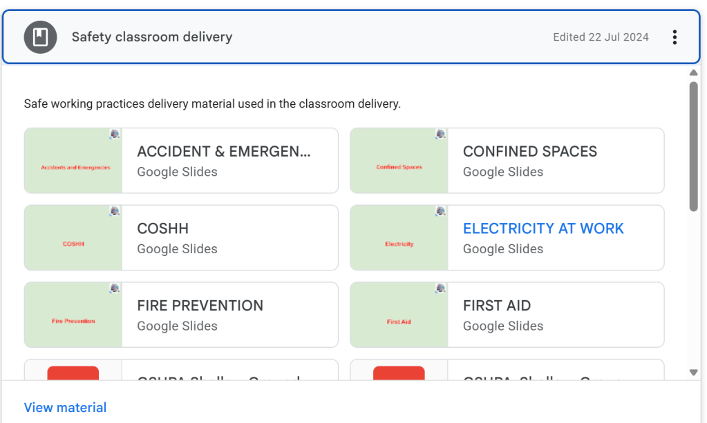 Classroom delivery in year 1 covering a range of topics with, formative and summative assessments as the apprentices progress