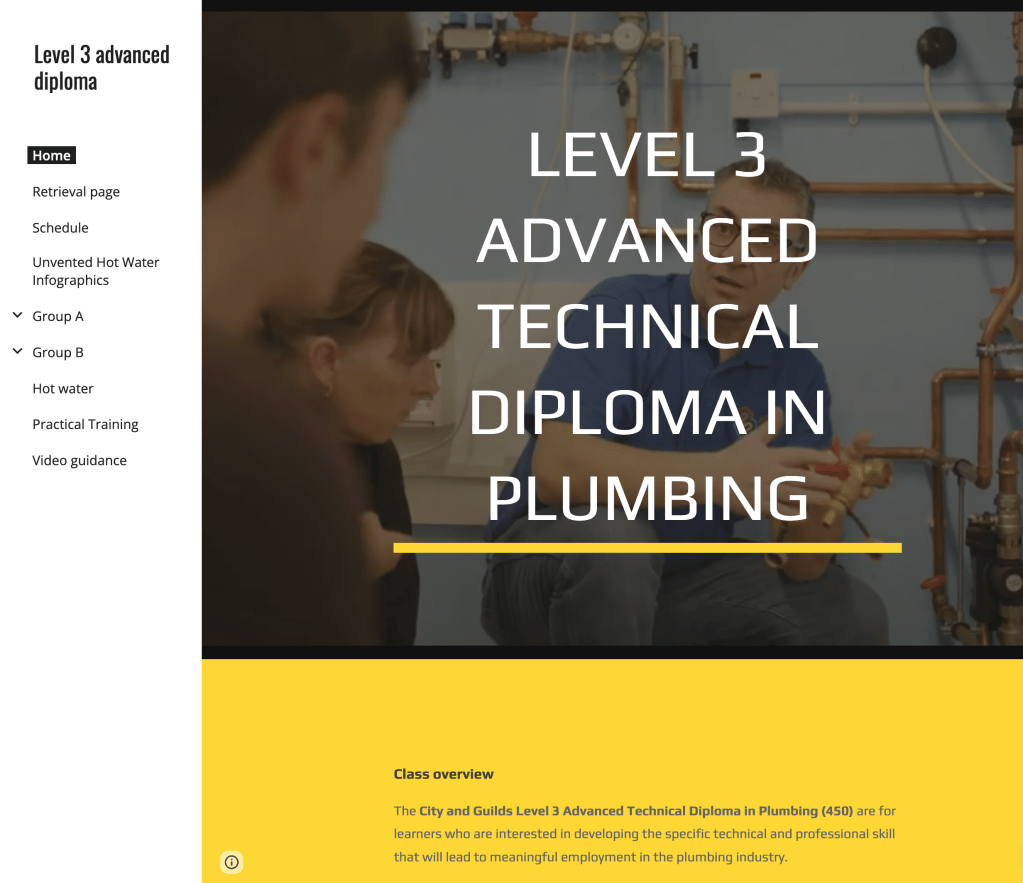 - Brand new this year at the college, was the reintroduction of the Advanced Diploma Level 3 in Plumbing Studies. A brand new curriculum design was introduced. Custom-made training packs were created for the program. Websites were designed to cover the required topics. Additionally, class websites and pages were created.